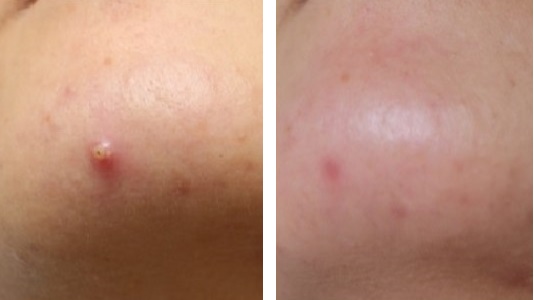 トレチノインで治療をすると、ニキビの原因となる皮脂の分泌が減るので、写真のようにニキビが改善します。