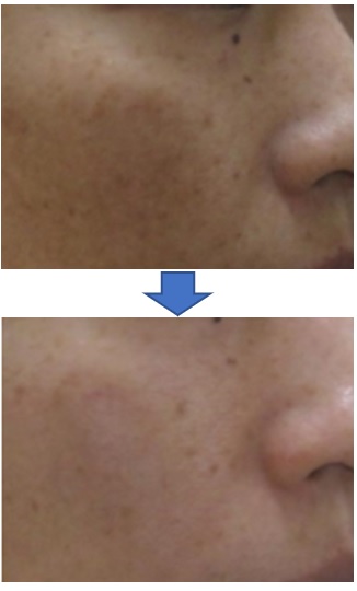 治療前に比べると、治療後には頬のシミとくすみが取れているのがわかります。