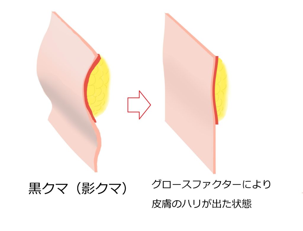 - 目の下の窪みは、グロースファクターで改善可能(他の治療法より重大なリスクが少ない)。