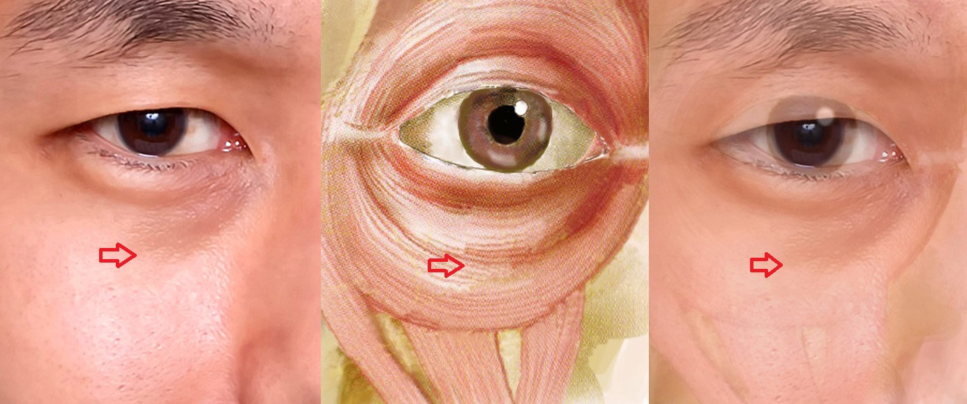 皮膚のコラーゲンが増え、ハリが出ることで、眼輪筋の境目が見えづらくなります。