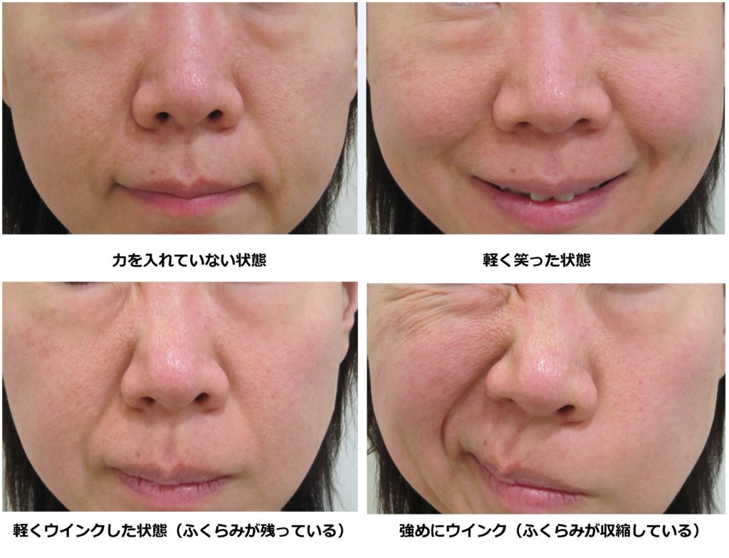 - 脱脂後にシワが出るかどうかは、鏡の前でウインクをしてみると、ある程度予測できる。