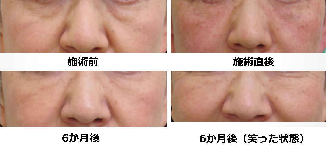 ところが、次のかたは、元々目の下に小ジワが寄るくらい皮膚の弾力が低下しています。
