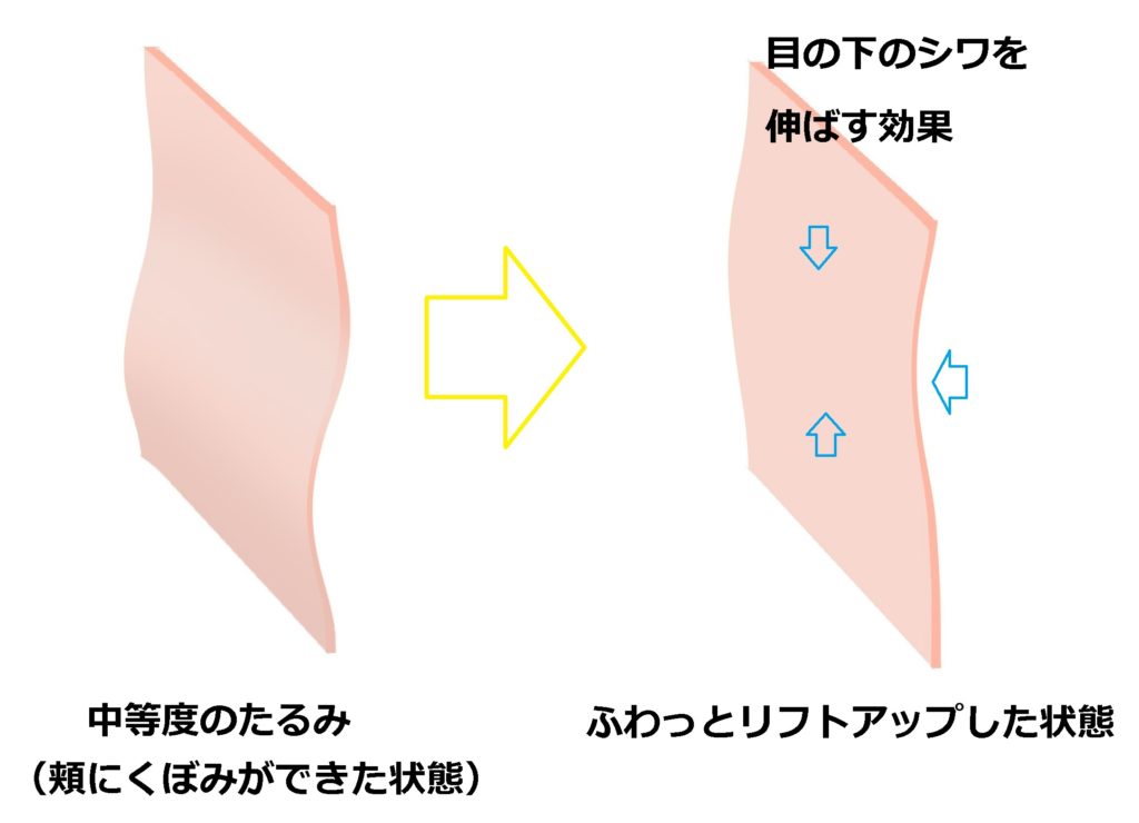 こちらは、下に支えを作り、それと同時に頬がリフトアップする力を応用して、目の下のシワ・小ジワを伸ばす効果があります。